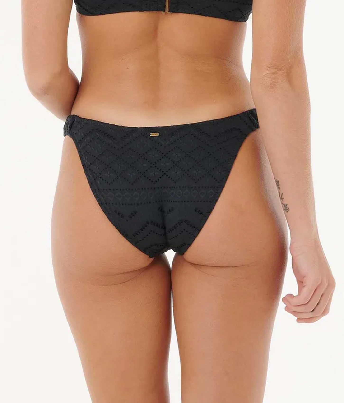 The San Carlos Broderie Good Coverage Bikini Bottom from Rip Curl offers a flattering high-cut leg and secure fit. Fully lined with side gathers and a signature metal logo trim, it delivers classic coverage with a touch of feminine detail.