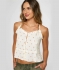 The Sandra Top by O'Neill is a woven tank with cross back straps a front button placket and all over print.