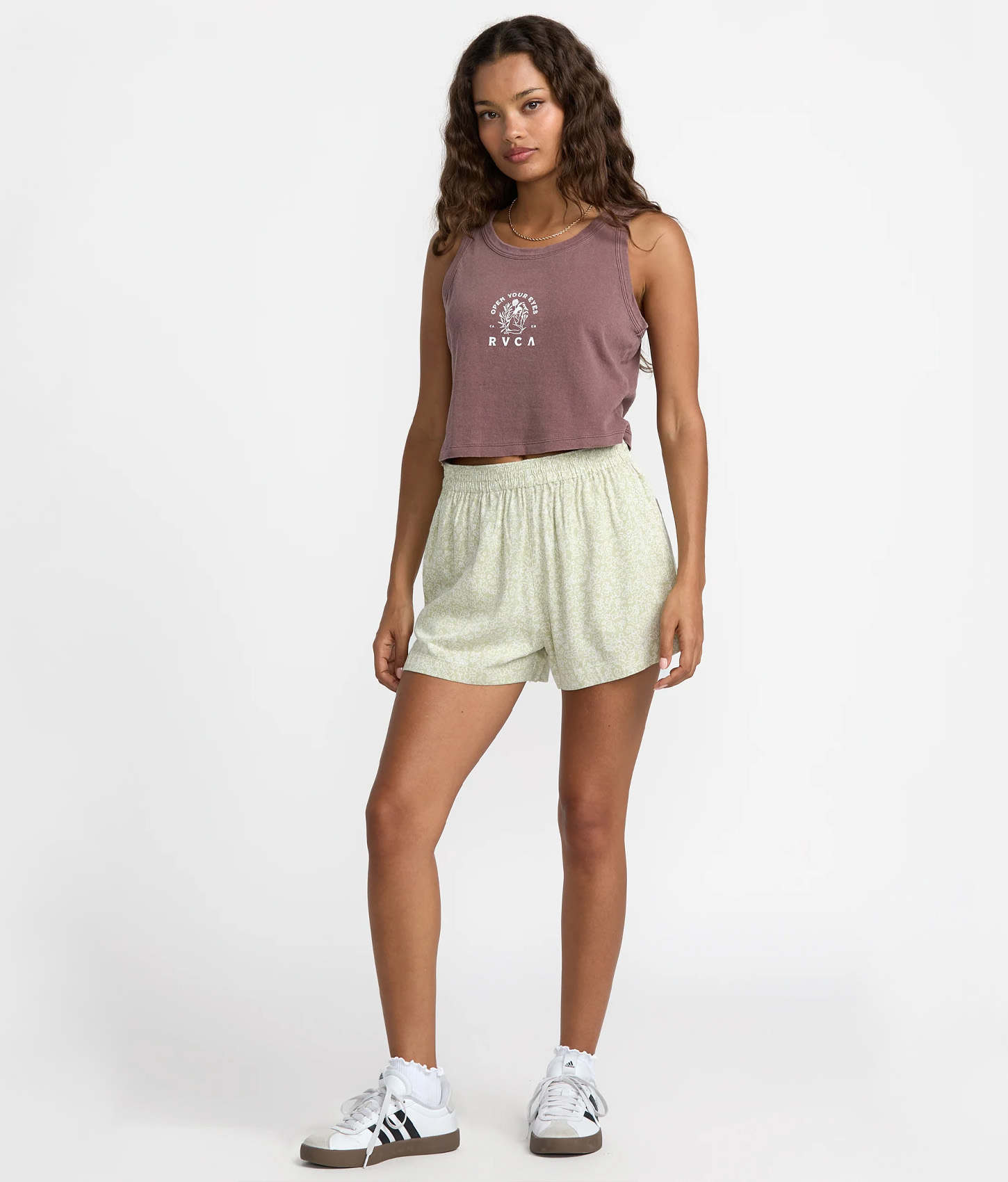 The Sawyer Short from RVCA is made from a viscose floral print fabric and features an elastic waistband.