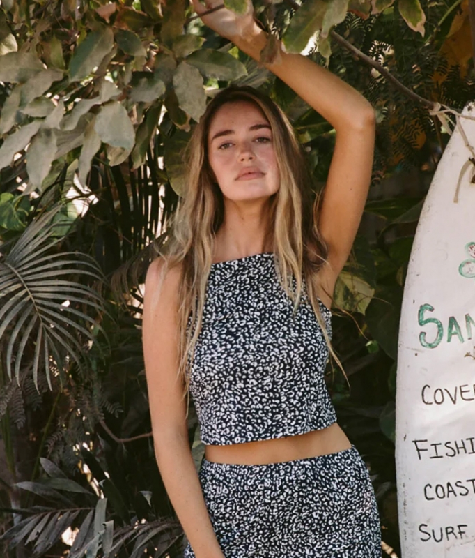 The Shaun Top by O'Neill offers a cropped length with a soft knit feel and allover print design.