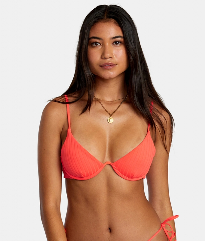 The Solid Streak Underwired Bikini Top from RVCA is made from recycled fabric and features a plunging neckline, underwire, and adjustable straps to suit you best.