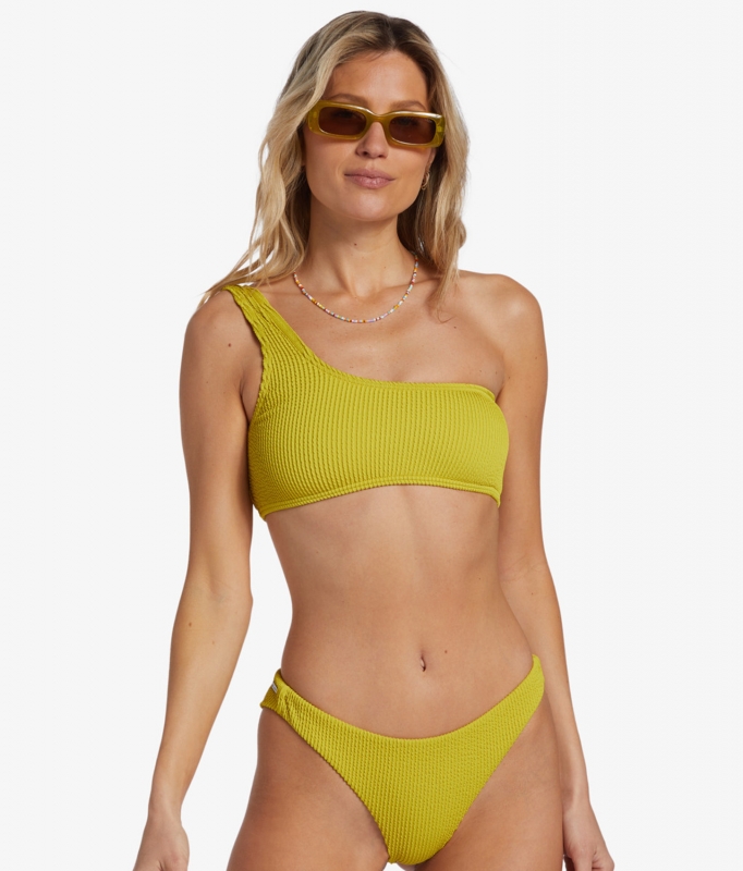 The Summer High Lilly 1 Shoulder Bikini Top from Billabong is a one-shoulder bikini top made from recycled materials and featuring a flattering textured fabric.
