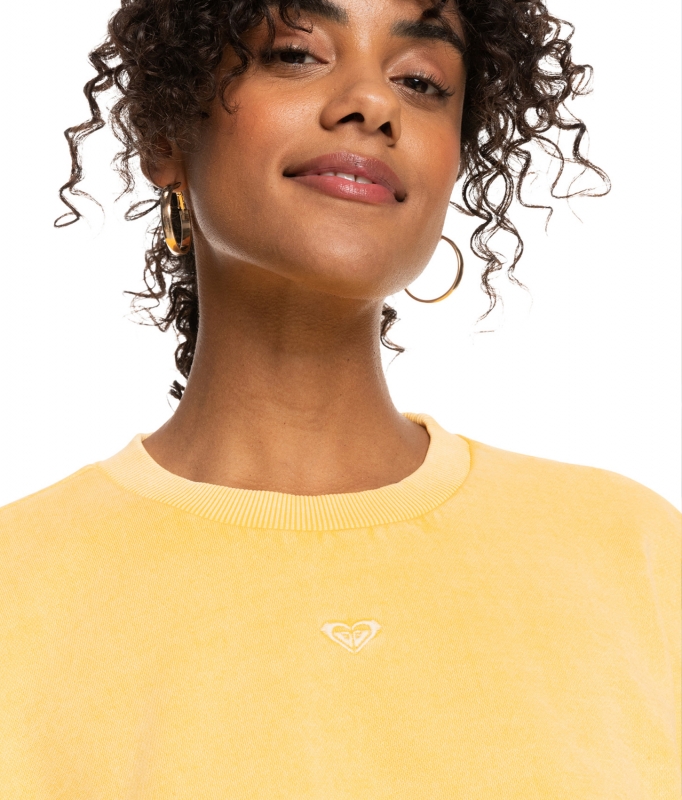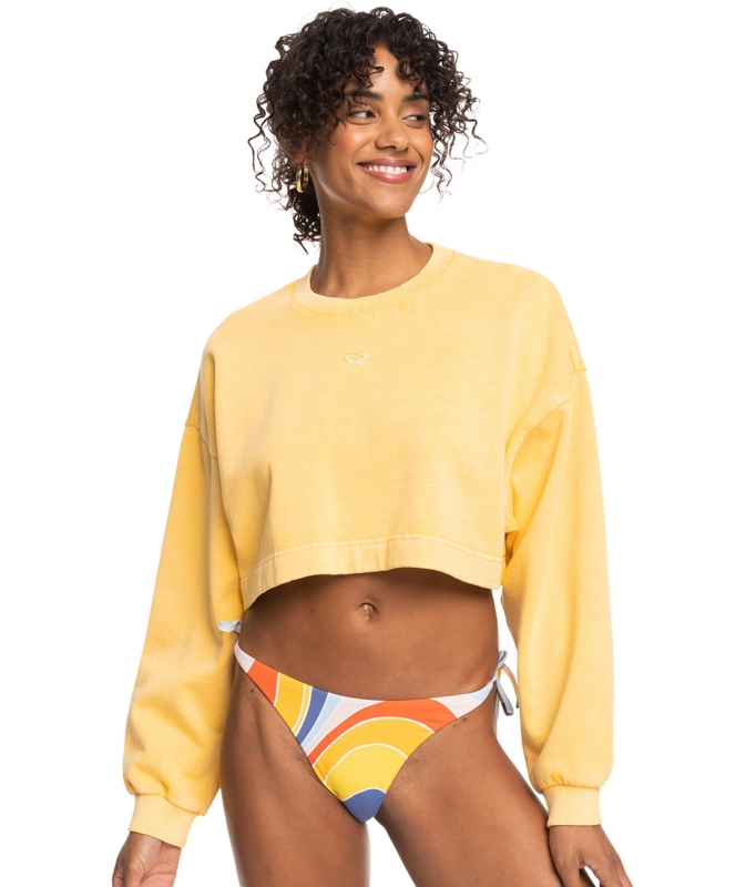 The Surf Safari Sweatshirt from Roxy features a cropped fit, crewneck, and cheerful vibe.