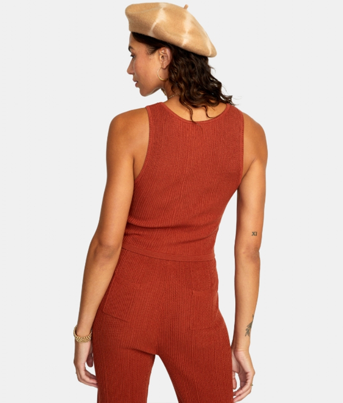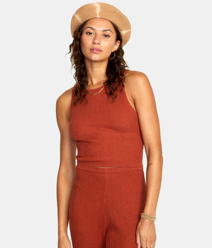The Swerve Cropped Tank Top by RVCA is a fitted tank with a soft sweater knit featuring a slight crop and undercuts seaming to define your shape.