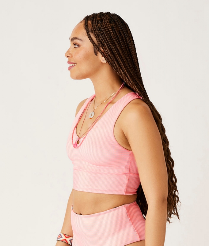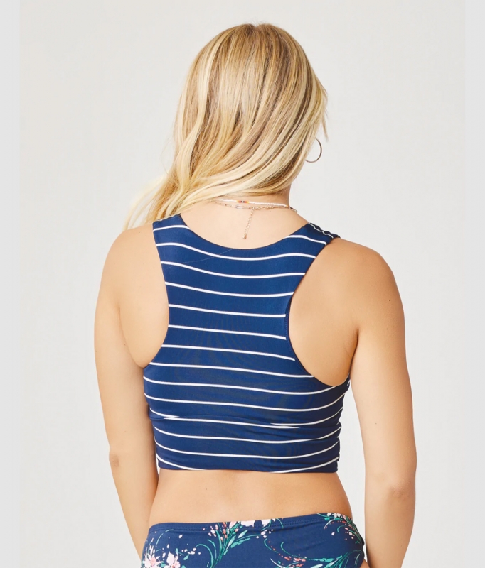 The Tofino Top from Carve Designs offers a longline tank silhouette and v-neck front, aiding in strong support and freedom of motion. This top is perfect for those who like a little more coverage, protection from the sun, and is ideal for active water sports.